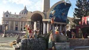 In piazza San Pietro a Roma si è tenuta anche quest’anno la cerimonia di inaugurazione del Presepe e dell’Albero di Natale. Donati dalla Diocesi di Nocera Inferiore-Sarno (Campania) e dalla Diocesi di Bolzano-Bressanone (Trentino Alto Adige), rinnovano la tradizione iniziata nel 1982 da Papa Giovanni Paolo II ai piedi dell'obelisco, nella cornice del Colonnato del Bernini.